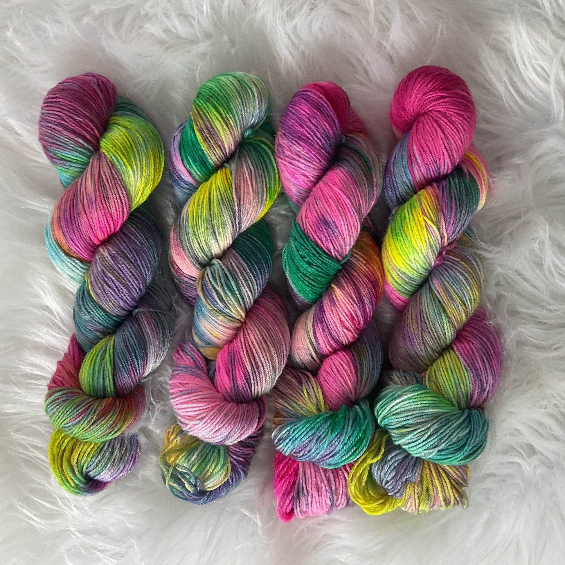 Carnival Cosmos is a vibrant, artful colourway bursting with neon pinks, electric greens, violet tones, and sun-kissed yellows — blended into a playful, wearable skein that feels as joyful as it looks. Each skein is hand-dyed in small batches in Nova Scotia, meaning no two are exactly alike. Expect beautiful variation, painterly transitions, and that signature Nova Knits glow.